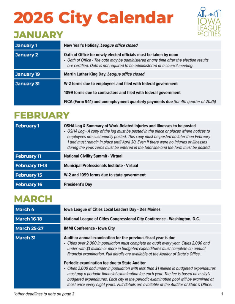 You can now stay on top of upcoming deadlines and events by subscribing to the Iowa League of Cities Key Dates City Calendar:
