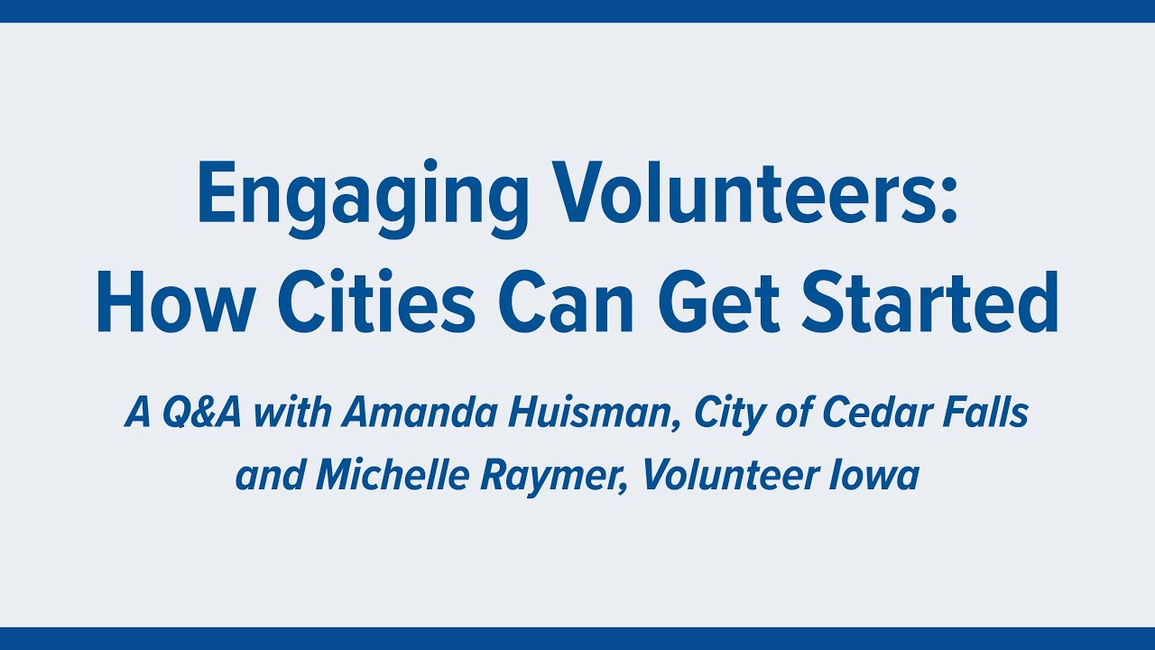 Discover practical ways to invite citizens to support your city’s work and strengthen local capacity. Join us for a one-hour Q&A-style webinar featuring the City of Cedar Falls as they share how they successfully launched their volunteer engagement efforts. Learn actionable steps, hear lessons learned, and get your questions answered.